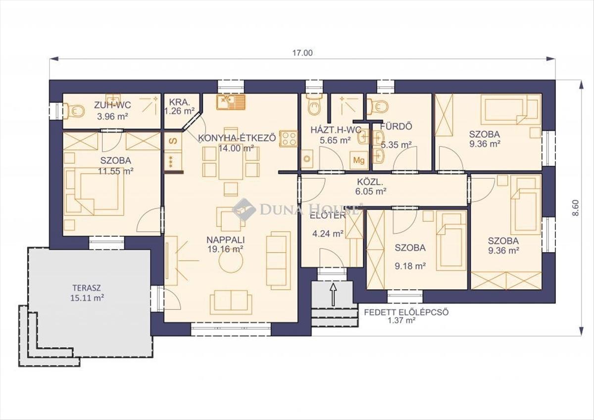 Eladó új építésű ház Lajosmizsén most csak 68. 862. 917 Ft-ért. a hirdetési ár tartalmazza a telket és az alaprajzon szereplő épület 99, 12 m2-es kulcsrakész családiházat, prémium műszaki tartalommal. Szeretné, ha álmai otthona stresszmentesen épülne fel? a generálkivitelező teljes körű szolgáltatást kínál, hogy az építkezés valóban gördülékeny és problémamentes legyen! Miért éri meg kivitelezővel a házépítés? - a bank belépése után előfinanszírozza a házépítést, Önök pedig csak az értékbecslések után fizetnek- ár-garanciát adunk- időgarancia- 5% ÁFA-t biztosítunk- ingyenes hitelügyintézés- kulcsátadás után 10 év garanciát adunkAz építkezés ideje és menete:1. Elbeszélgetés, elképzelések körvonalazása, előzetes alaprajz2. Telek megvásárlása, ami jelen esetben 6, 5 millió Ft3. Hitelügyintézés4. Alaprajz véglegesítése5. Szerződéskötés6. Tervek kiküldése társ tervezőknek7. Építkezés8. ÁtadásA házépítés tervezési fázisa 6-8 hetet vesz igénybe. a tervek beadását követően 15 naptári napon belül kezdődhet meg az építkezés. Az eddigi tapasztalatok alapján egy egyszerűbb ház elkészítési ideje 6-8 hónap, a tagoltabb házak pedig 8-10 hónap alatt készülnek el. Rövid műszaki tartalmi leírásunk:- teherhordó falazat: Wienerberger Porotherm 30 X-therm tégla- válaszfal: 10 cm es tűzgátlógipszkarton válaszfal- homlokzati hőszigetelés: 15 cm ; lábazat szigetelés 10 cm- födém szigetelés: 30-35 cm (fújt Supafil loft)- tetőhéjazat választható: Bramac, Leier vagy Terrán tetőcserép 10 színben- külső nyílászárók: 3 üvegrétegű; 6 légkamrás; karbongázas; Gealan Német prémium; kívül-belül fehér színben; belül műanyag kívül fehér alumínium párkánnyal- hidegburkolat választható: 9. 500 Ft / m2- melegburkolat választható: 6. 500 Ft / m2- szaniterre költhető összeg: 100 m2- ig 600. 000Ft ; /100 m2 felett 650. 000 Ft - beltéri ajtó választható: 100. 000Ft-ig- fűtés: Bosch Condends GC5700iW p24 falikazán+ padlófűtés ( hőszivattyús rendszer is kérhető viszont egyedi árazást igényel) a ház energetikai követelményeit figyelembe véveAJÁNDÉKNapelem 2, 5 kw-ig vagyKlíma 3 szoba + nappali helyiségbeTermészetesen ezektől eltérő igények is teljesítésre kerülnek, egyedi árazás után. Jellemzői:– 30% telekhányadra lakóingatlan építhető- 835 m2 (önálló helyrajzi szám)Közművek:– gáz: utcában– villany: utcában– csatorna: nincs- víz: utcábanAz ár kulcsrakész átadással értendő, a telek árát TARTALMAZZA! Ha felkeltette érdeklődését, hívjon bátran! Biztosan találunk megoldást, hiszen a házterv paraméterei egyedi igények szerint alakítható. Amennyiben a ház megvételéhez Önnek még el kell adnia ingatlanát, a Duna House teljes csapatával segítjük az értékesítést, valamint díjmentes Hitel, CSOK plusz, Babaváró ügyintézéssel kapcsolatban szintén állunk rendelkezésére. Forduljon hozzánk bizalommal! FIX 3% lakáshitelre megvehető