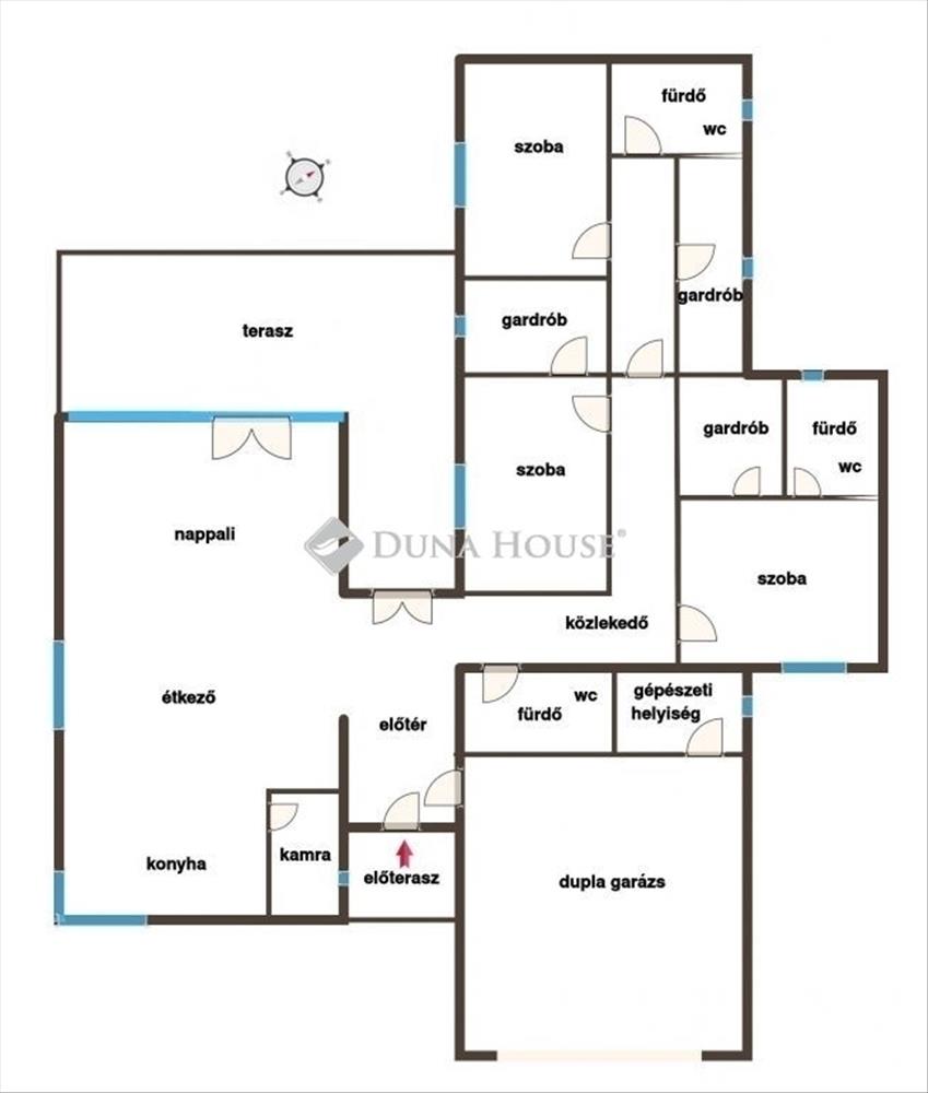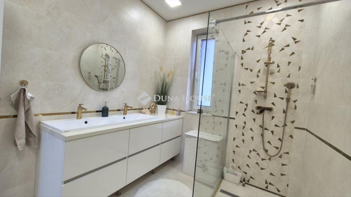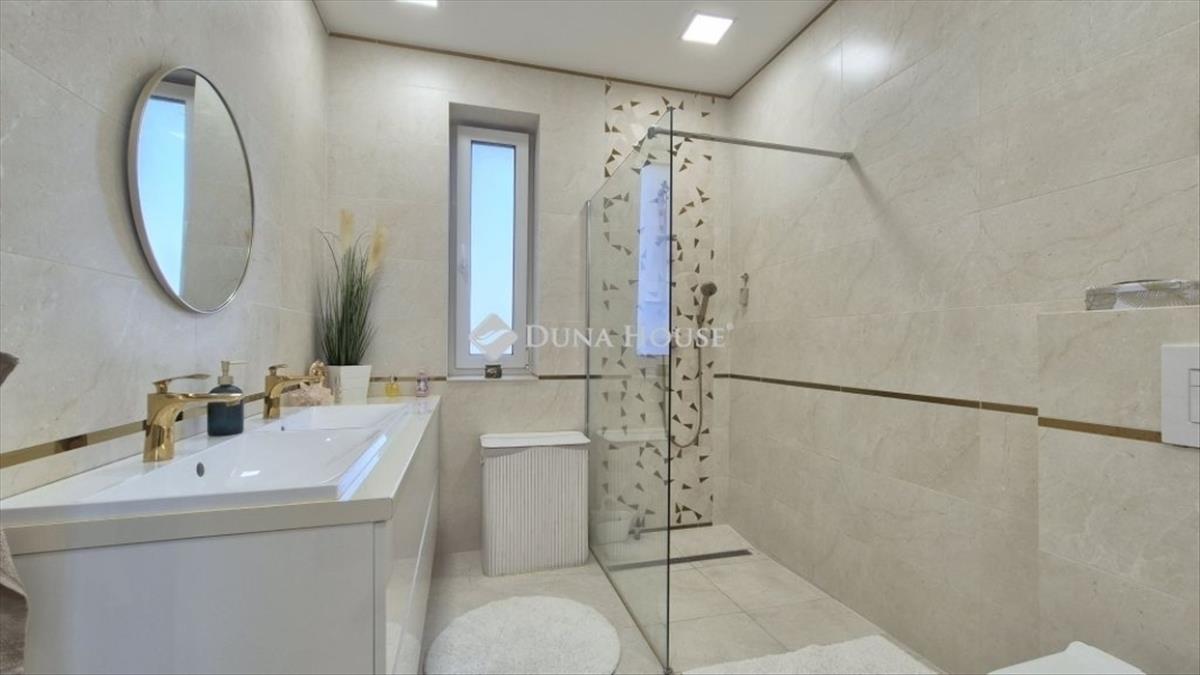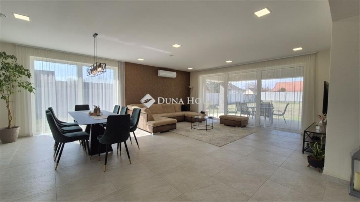 Eladó Lakitelken prémium minőségű 268 nm -es nappali + 3 szobás, 3 fürdő, 3 gardrób, dupla garázsos családi ház, 1412 nm sarki telken, csendes utcában, közel a központhoz! a lakótér 179 nm + 39, 6 nm dupla garázs + 49 nm teraazfelület. Az ingatlan minden részletében a minőségre, energiatakarékosságra és kényelemre lett tervezve. Főbb jellemzők:- 3 külön nyíló hálószoba, mindegyikhez saját fürdő és gardrób tartozik- dupla garázs: két autó beállására alkalmas, közvetlen bejárattal a házba, elektromos garázskapu- Porotherm 38-as téglából épült- 2022-es építés- 15 cm kőzetgyapot szigeteléssel a homlokzaton- 30 cm mennyezeti szigeteléssel, E gerendás, kefnis födémszerkezet- 2 x 10 cm padló szigeteléssel- Bramac mázas tetőcseréppel fedett ácsolt tetőszerkezet- 3 réteg üvegezésű színezett, Rehau nyílászárók kerültek beépítésre. - Daikin Altherma 16 kW-os hőszivattyús rendszer, az egész házban padlófűtés - a klíma központilag megoldott, amit egy 5, 5 kW és négy 2, 7 kW klíma biztosít, a kamra külön klimatizált - Szellőzőrendszer az egész házban kiépítve. - a telek 2 méter magas, beton elemes kerítéssel körbe kerítve. a családi ház 28 km távolra van Kecskeméttől, ezért idális választás lehet olyanoknak, akik egy korszerű, magas műszaki tartalmú, otthont keresnek.