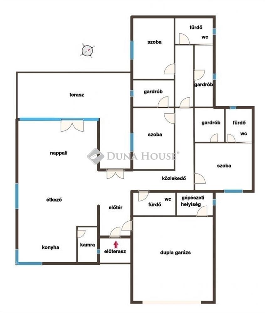 - dupla garázs: két autó beállására alkalmas, közvetlen bejárattal a házba, elektromos garázskapu