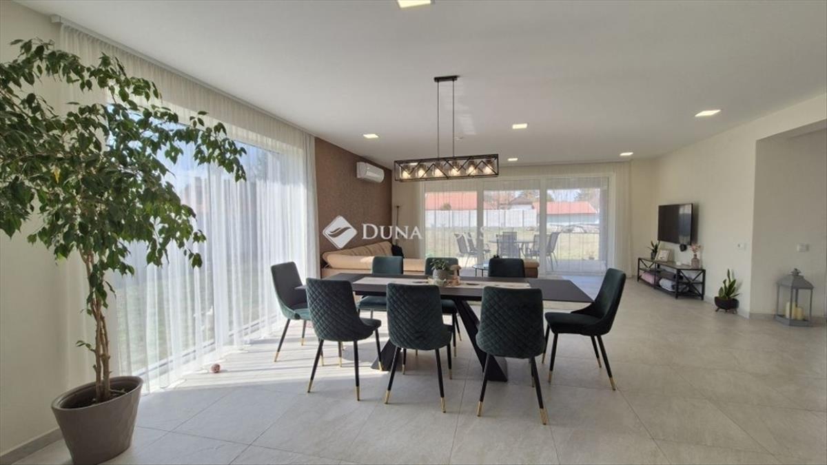 Eladó Lakitelken prémium minőségű 268 nm -es nappali + 3 szobás, 3 fürdő, 3 gardrób, dupla garázsos családi ház, 1412 nm sarki telken, csendes utcában, közel a központhoz! a lakótér 179 nm + 39, 6 nm dupla garázs + 49 nm teraszfelület. Az ingatlan minden részletében a minőségre, energiatakarékosságra és kényelemre lett tervezve.