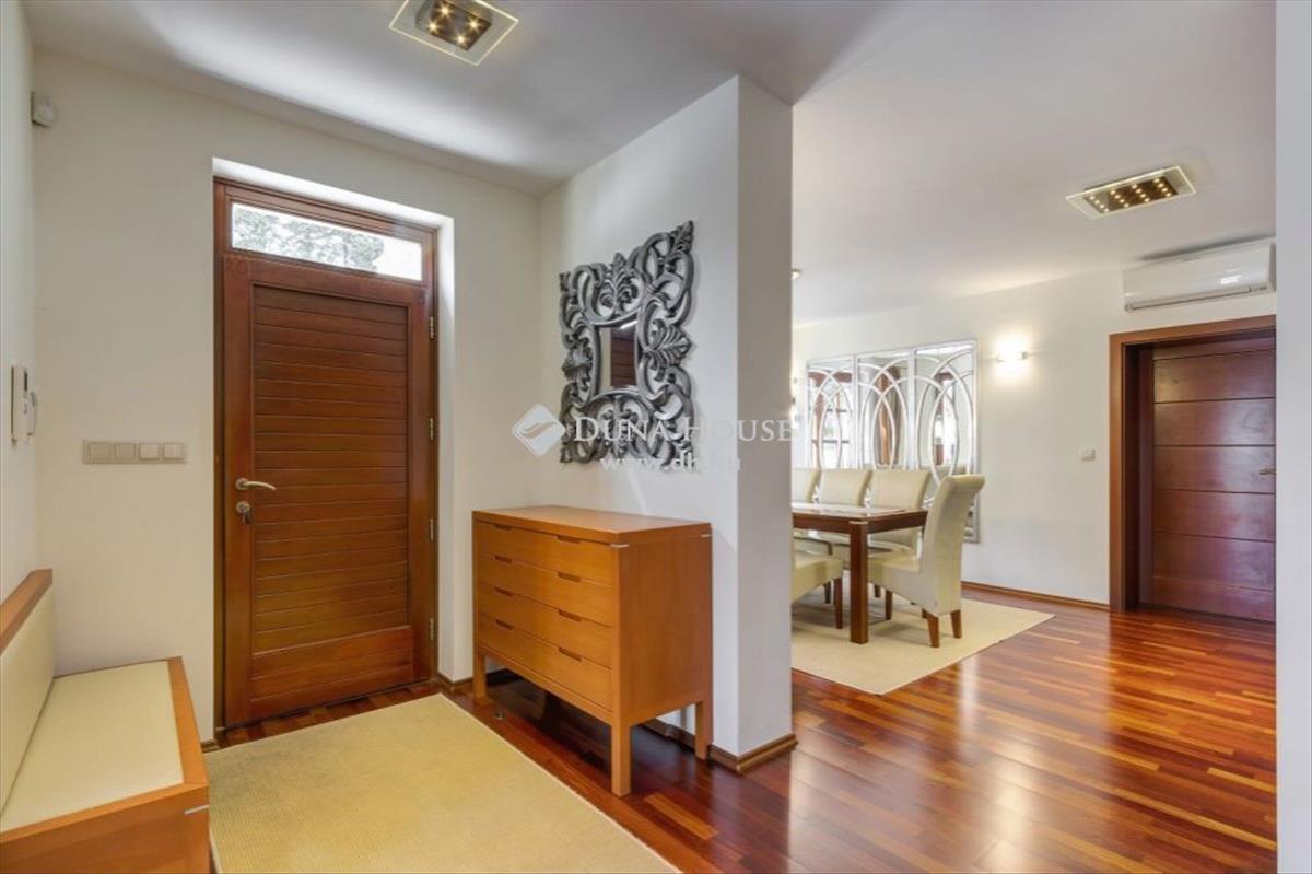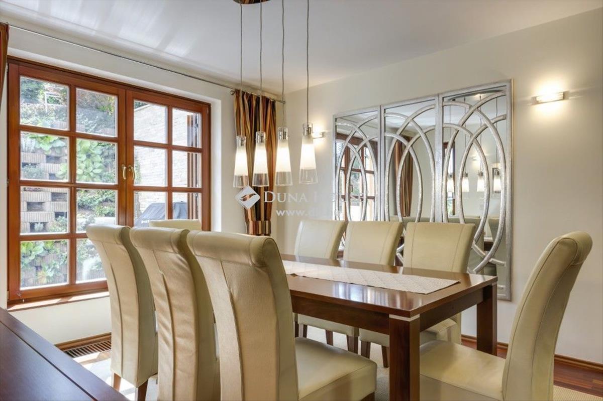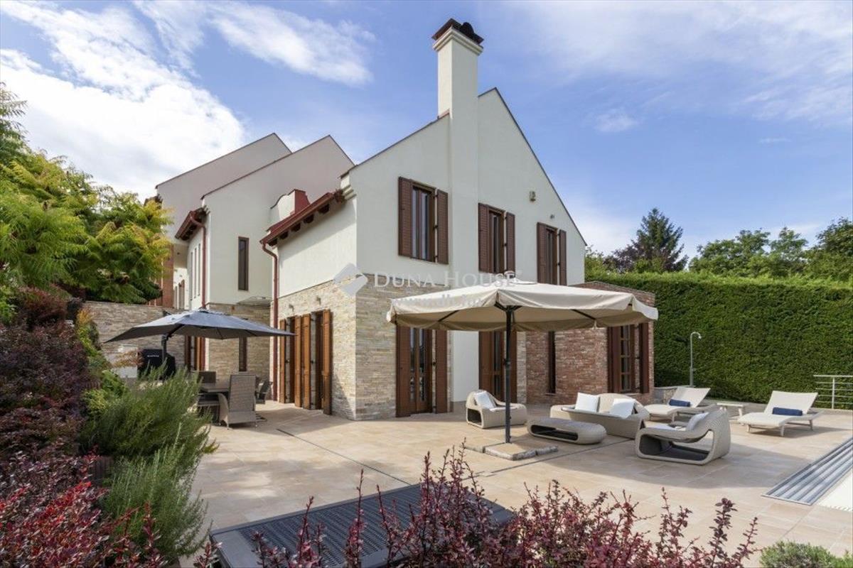 Leányfalu domboldalán, közel a főúthoz, mégis távol annak neszétől, eladó egy minden luxust kielégítő, panorámás, két lakásos családi ház. a 1203 nm-es, különlegesen parkosított telken fekvő, 400 nm-es ház adottságait tekintve alkalmas pihenésre, több gyermekes családi életre, alkotó munkára, de nagy társasági életre is. Igényes, egyedi tervezés és kivitelezés, kitűnő beosztás jellemzi.