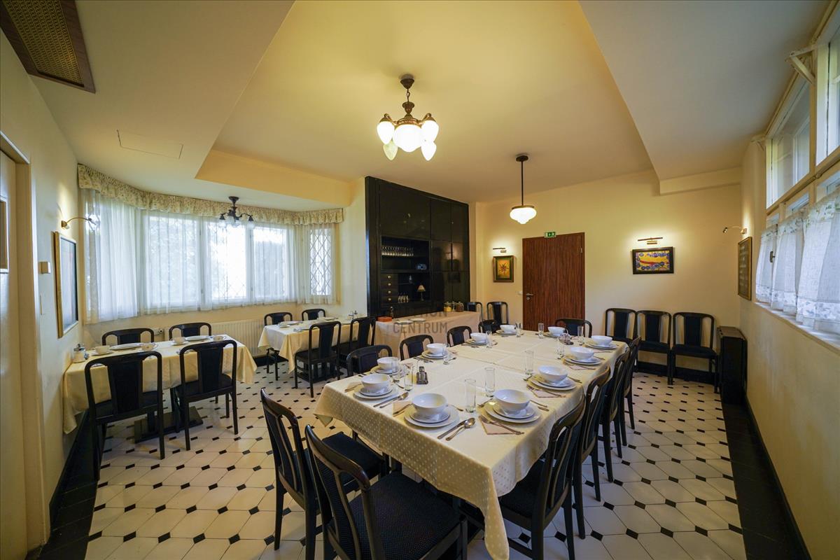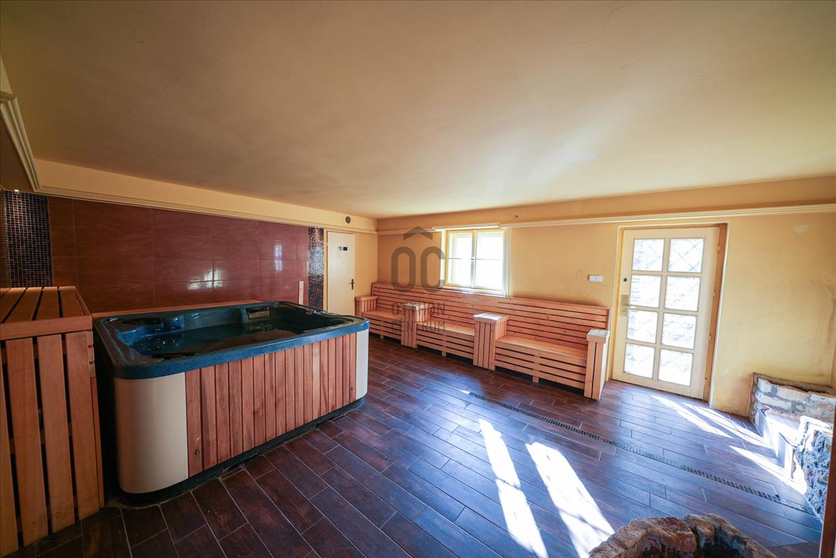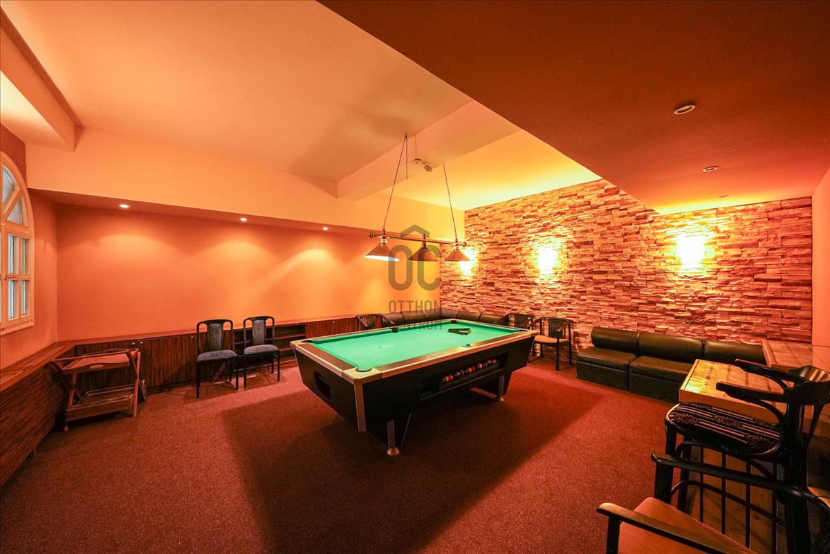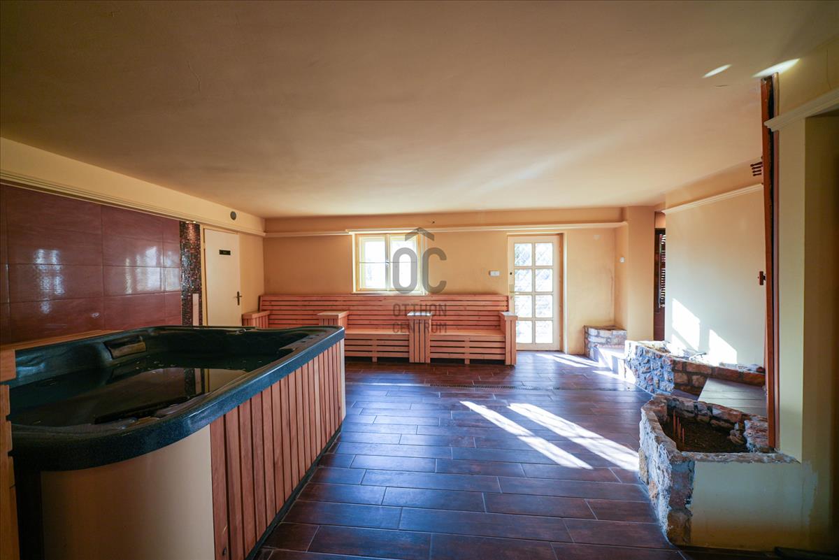 Két tárgyaló, télikert, recepció, étterem, konyha található a földszinten, az alagsori részben jakuzzi és két infraszauna lett kialakítva.