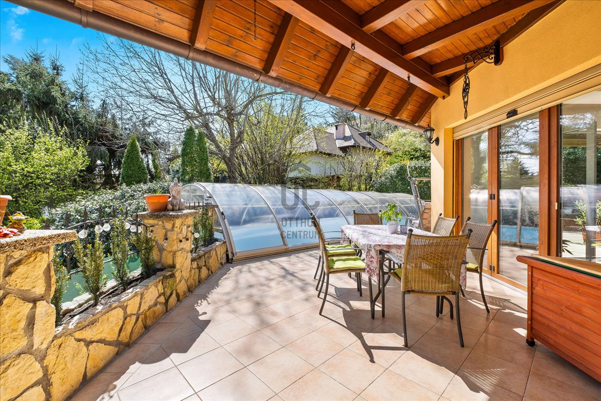 A nagyméretű, 9x3 méteres, fűthető, fedett medence a teraszról megközelíthető, így a háznak ezen része ideális teret biztosít pihenésre, sportoláshoz, vagy a családtagok és barátok fogadására is.