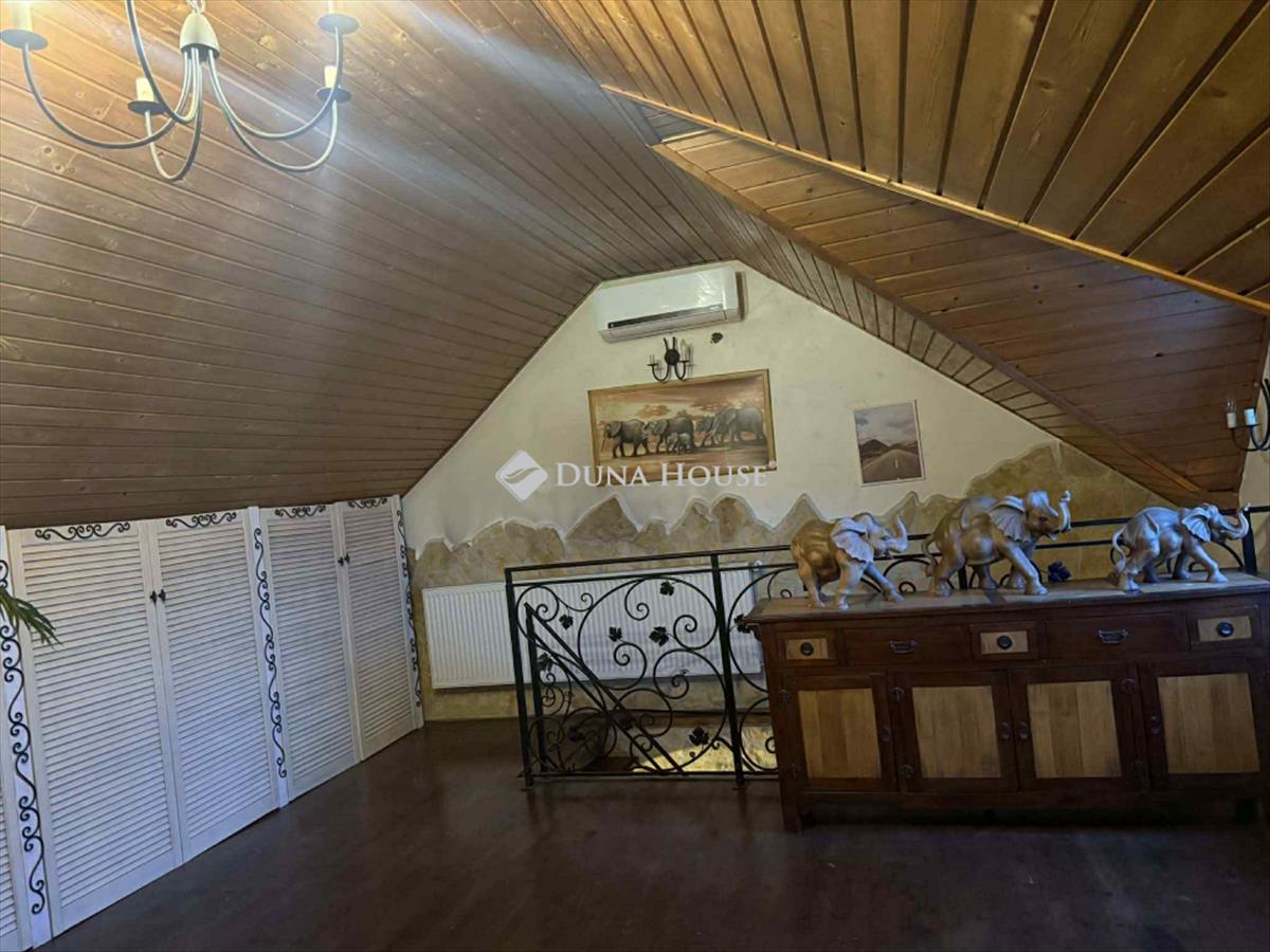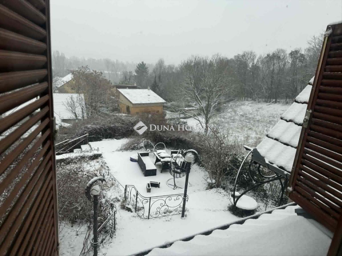 Panorámás családi ház eladó Leányfalun, bővítési lehetőséggel, tágas telken! Leányfalu egyik legkedveltebb, csendes hegyoldali részén kínálunk megvételre egy kiváló adottságokkal rendelkező, két szintes családi házat. Az ingatlan egy 912 m²-es, tágas telken, a telek legmagasabb pontján helyezkedik el, ennek köszönhetően minden szintjéről lenyűgöző, örök panoráma tárul elénk. a természet közelsége mellett a lokáció is kiváló:a Duna-part mindössze 5 perc sétára, míg a leányfalusi strand kb. 10 Perc gyalogosan, így a nyári kikapcsolódás könnyedén elérhető. Az ingatlan főbb jellemzői: Kétszintes kialakítás: a földszinten konyha, fürdőszoba és nappali található, a tetőtérben egy tágas, jól alakítható szoba kapott helyet. Bővíthető: az ingatlan tovább bővíthető, így akár több hálószoba vagy nagyobb élettér is kialakítható. Sokoldalú fűtés: gázcirkó, kandalló és klímaberendezés biztosítja az egész éves komfortot. Parkolás a telken belül, több gépjármű számára is megoldott. Szauna kialakítása előkészítve. Kerti kút található a telken, amely ideális locsoláshoz és kertfenntartáshoz. Nyugodt, privát környezet: a szomszédos telek beépítetlen, így a zavartalan pihenés hosszú távon is biztosított. Az ingatlan ideális választás mindazok számára, akik természetközeli, mégis könnyen megközelíthető otthont keresnek, panorámával, tágas telekkel és további fejlesztési lehetőségekkel. Ne maradjon le erről a ritka lehetőségről!