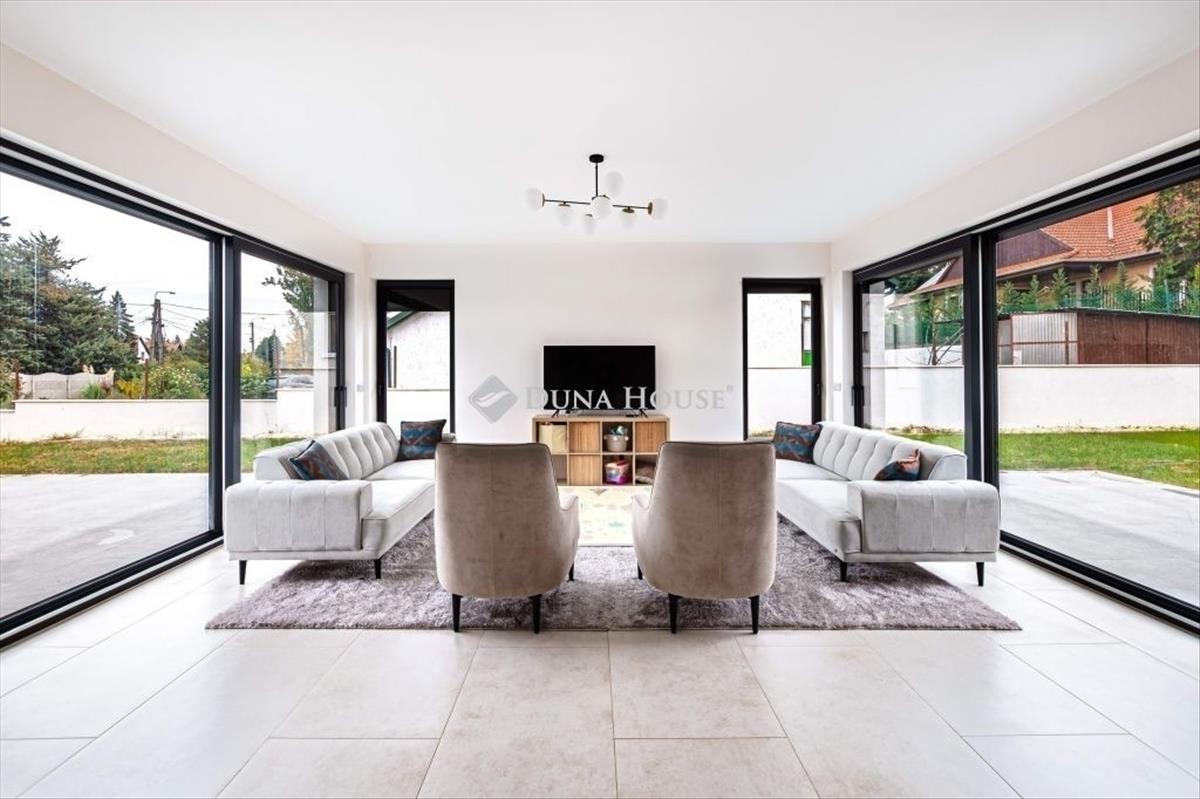Kivételes lehetőség egy minőségi kivitelezésű, modern, nettó 120 m²-es otthon, amely 1059 m²-es, rendezett telken fekszik.