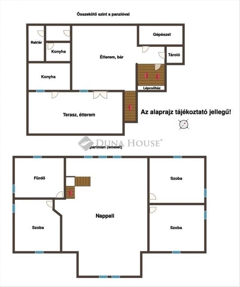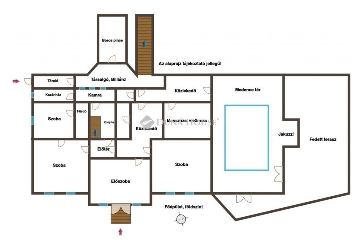 Leányfalun, a Duna-part közvetlen közelében eladásra kínálunk egy kiemelkedő adottságokkal rendelkező, sokoldalúan hasznosítható ingatlant. a ház nettó 744 m² alapterületű, egy 3 652 m²-es, tágas telken helyezkedik el, csendes, mégis kiválóan megközelíthető környezetben. a teljes alapterület három különálló egységből áll: Lakóház: 348, 6 m² Panzióépület: 250, 1 m² Melléképület: 145, 7 m²LakóházA lakóház földszintjén wellness részleg került kialakításra, amely magában foglalja a jakuzzit, többféle szaunát, masszázsszobát, öltözőket és zuhanyzókat, ideális privát vagy üzleti célú használatra egyaránt. Egy beltéri medence is kialakításra került, amely ideiglenesen le van fedve, és jelenleg rendezvény- illetve többfunkciós térként használják. a medence teljes gépészete megmaradt, így bármikor, jelentős átalakítás nélkül visszaalakítható eredeti állapotába, amennyiben az új tulajdonos ezt kívánja. a tetőtérben három tágas szoba, közös fürdőszoba, valamint egy közösségi tér kapott helyet, amely kényelmes lakhatást vagy vendégelhelyezést biztosít. PanzióépületA panzió alsó szintjén közösségi és kiszolgáló helyiségek találhatók: étkező, társalgó, professzionálisan kialakított konyha, mosogató és személyzeti öltöző. a felette elhelyezkedő két szinten összesen 6 apartman szoba került kialakításra, mindegyik saját fürdőszobával és erkéllyel rendelkezik. MelléképületA melléképület földszintjének felújítása megkezdődött, új nyílászárókat kapott, azonban a befejezés az új tulajdonosra vár. Az épület földszintjén és tetőterében egyaránt 2- 2 lakás alakítható ki, ami további bővítési vagy befektetési potenciált jelent. Elhelyezkedés és megközelítésAz ingatlan több irányból is könnyen megközelíthető, a parkolás telken belül megoldott. a Duna-part közelsége, valamint a természetközeli, nyugodt környezet különösen vonzóvá teszi lakhatási és üzleti célra egyaránt. a panzió ideális választás mindazok számára, akik értéket, lehetőséget és minőséget keresnek. Befektetőknek, akik bejáratott, kiváló értékelésekkel rendelkező, azonnal tovább üzemeltethető panziót keresnek a Dunakanyar egyik legkeresettebb településén. Családi vállalkozásnak, ahol a lakhatás és a munka egy helyen megoldható több különálló egységének köszönhetően jól szeparálható privát és üzleti térrel. Többgenerációs családoknak, akik egy különleges adottságú ingatlant keresnek: a ház elrendezése lehetővé teszi, hogy több generáció kényelmesen, mégis egymástól elkülönülve éljen. További információkért keressen telefonon!