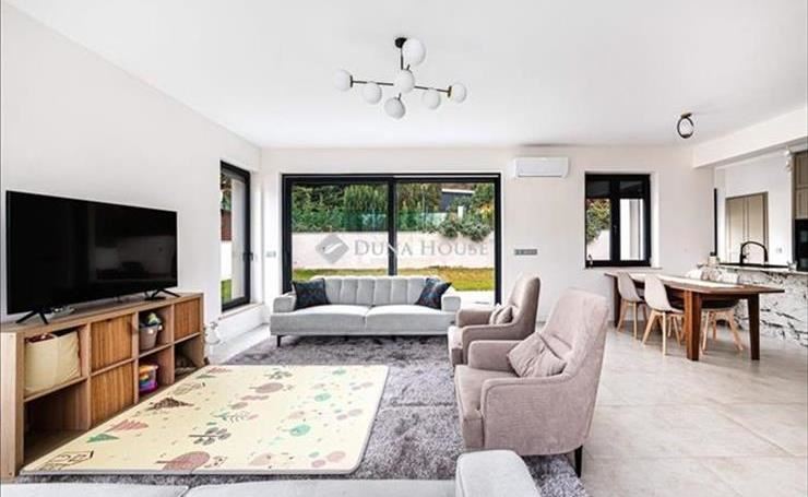 Kivételes lehetőség egy minőségi kivitelezésű, modern, nettó 120 m²-es otthon, amely 1059 m²-es, rendezett telken fekszik.