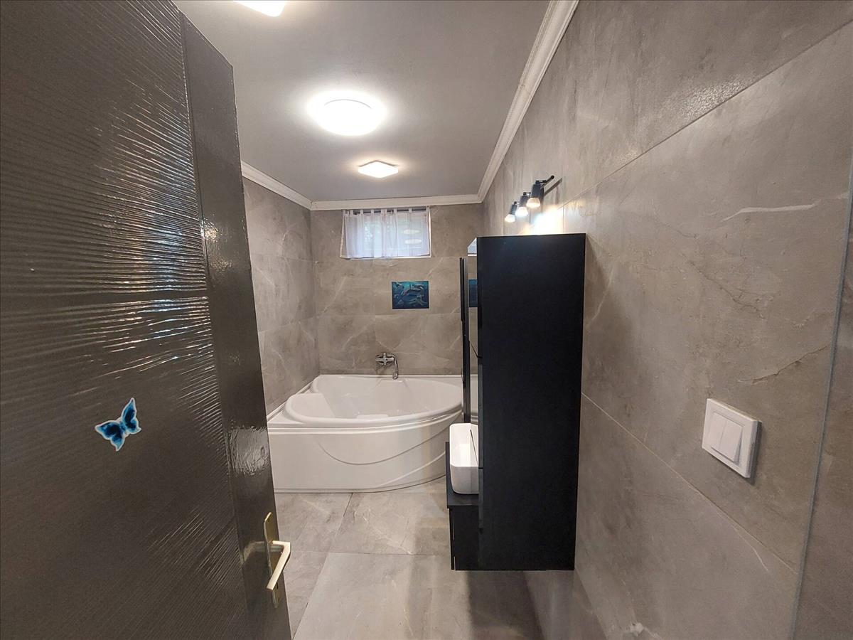 A szobák laminált padlóval, a többi helyiség járólappal lett burkolva.