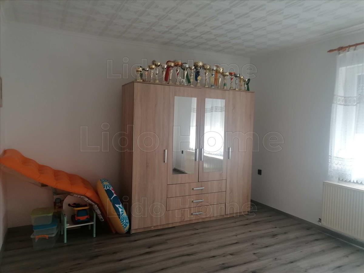 - a házban nappali + 3 szoba, nappali, konyha, fürdőszoba, külön wc, kamra, található.