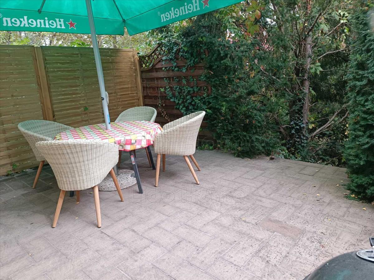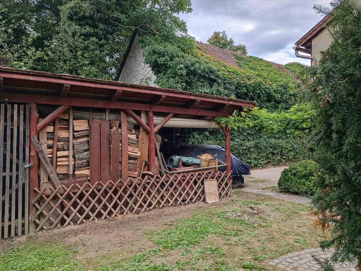 A ház 1000 m²-es, parkosított telken áll, fedett kocsibeállóval, gondozott kerttel, fedett terasszal és kerti sütögetővel – tökéletes helyszín a pihenéshez és a baráti összejövetelekhez.
