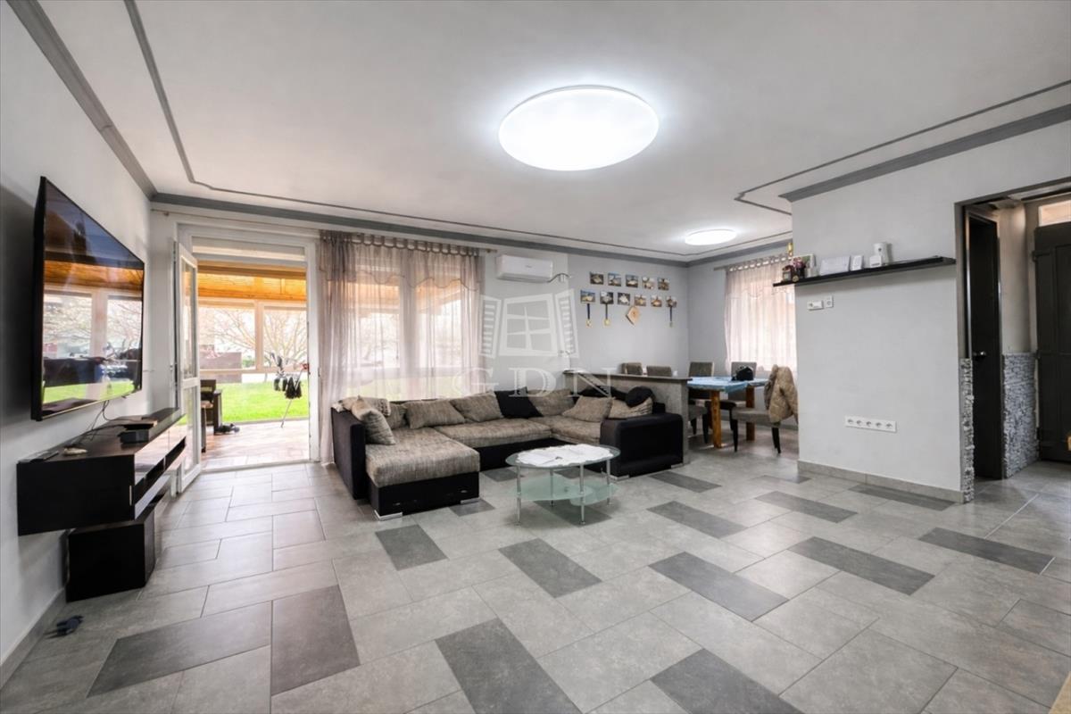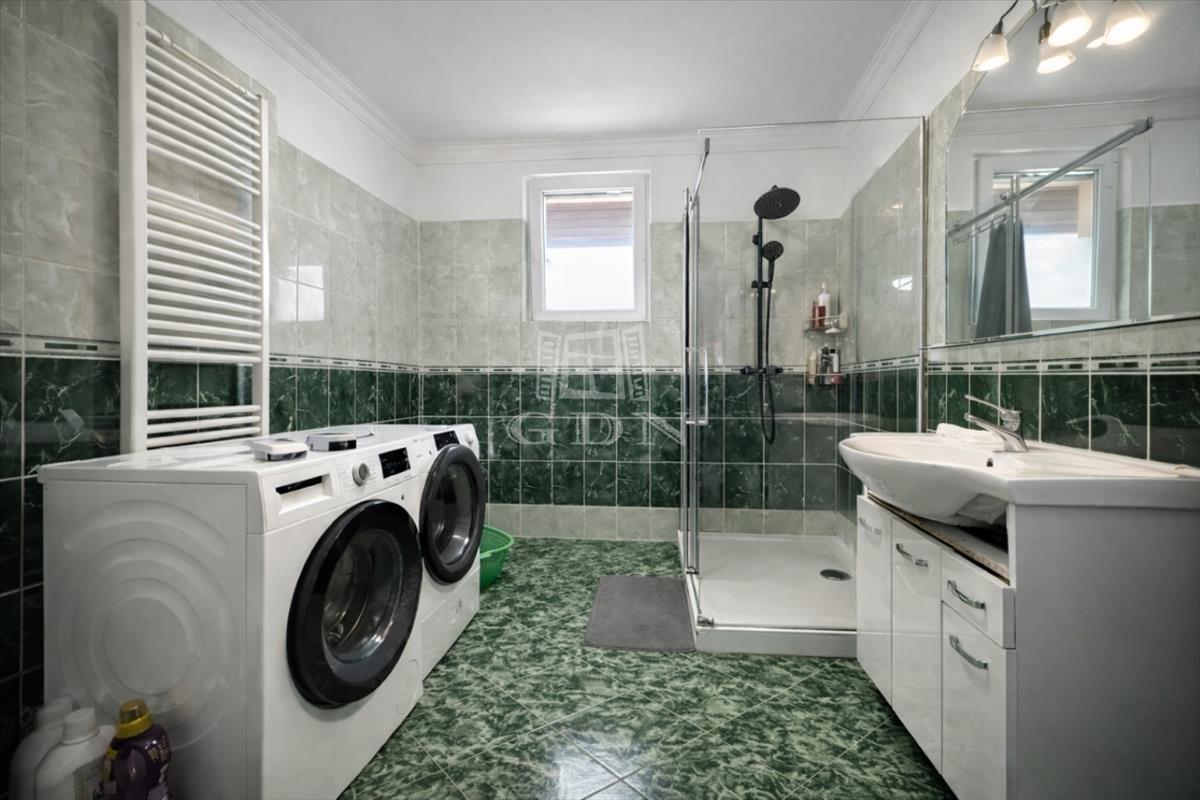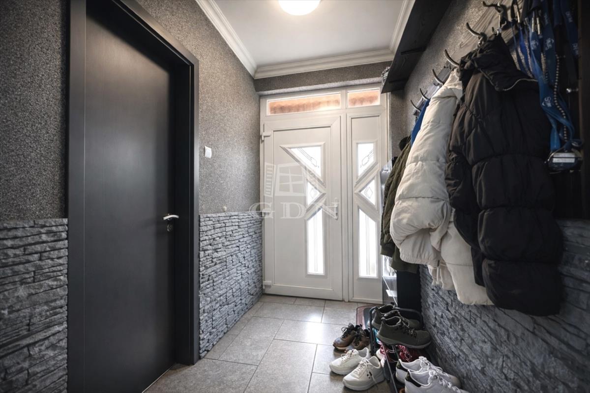 Elosztását tekintve 115m2 hasznos alapterületű. Előszoba, vendég wc, nappali-étkező, konyha, kamra, 3 hálószoba és beépített terasz lett kialakítva.
