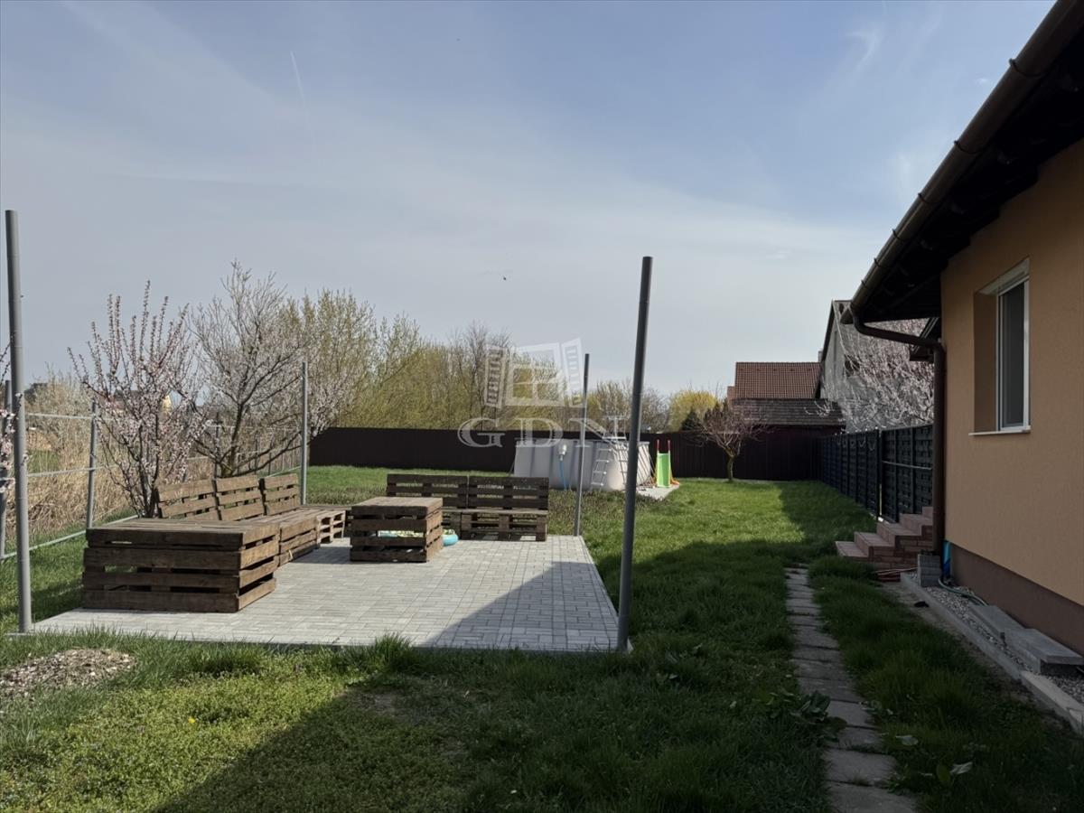A telek 1877m2, részben körbekerített. Füvesített, egy része térkövezett. Kettő elektromos kapu került az utcafronti részhez. Található pár gyümölcsfa (barack, cseresznye, . . ) És kerticsap is rajta.
