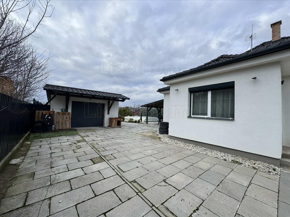 A házhoz tartozik egy 42 m²-es fedett terasz, amely ideális családi és baráti összejövetelekhez.