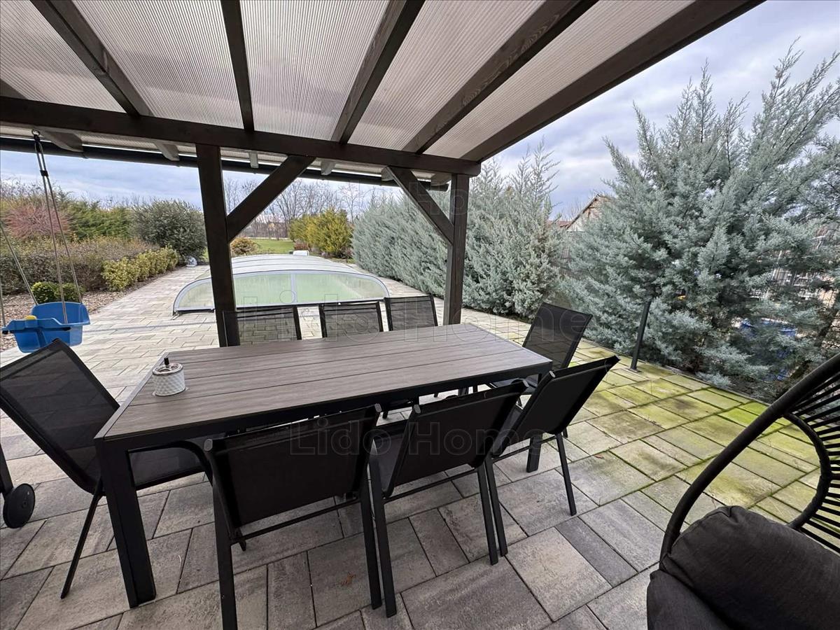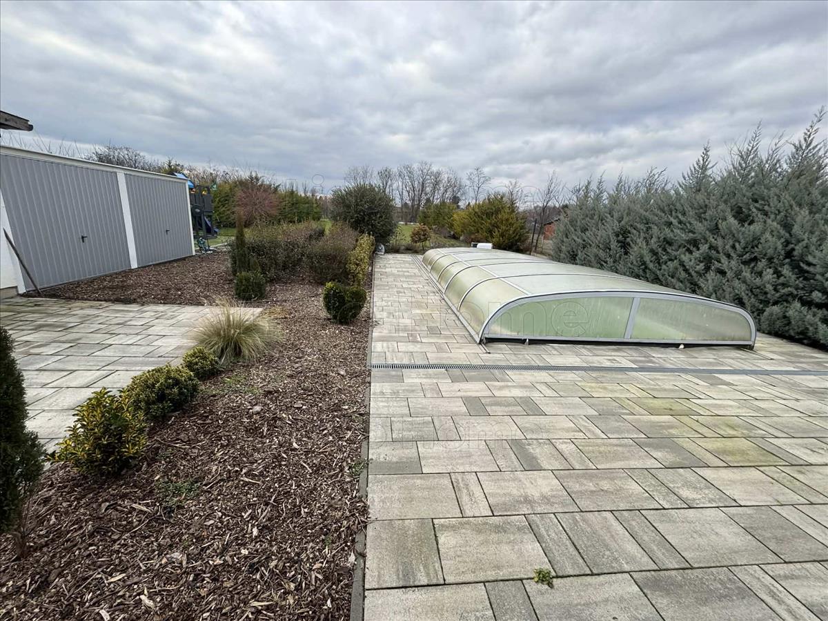 Az 1742 m²-es parkosított kert öntözőrendszerrel és robotfűnyíróval felszerelt. a kertben található medence hőszivattyúval és fedéssel, amely egész szezonban kényelmes használatot biztosít.