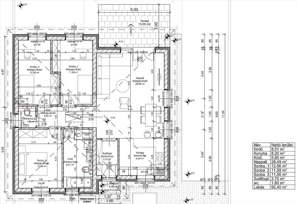 Az ingatlan nettó 92, 40 m² lakóterülettel rendelkezik, amelyhez tartozik egy 1, 4 m²-es fedett belépő, valamint egy 15 m²-es, nappaliból nyíló terasz, amely kellemes kertkapcsolatot biztosít.