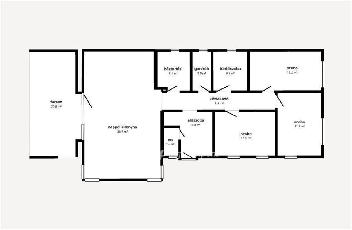 A nappaliból egy 20, 8 nm-es, fedett terasz érhető el, amely ideális pihenésre és családi programokra.