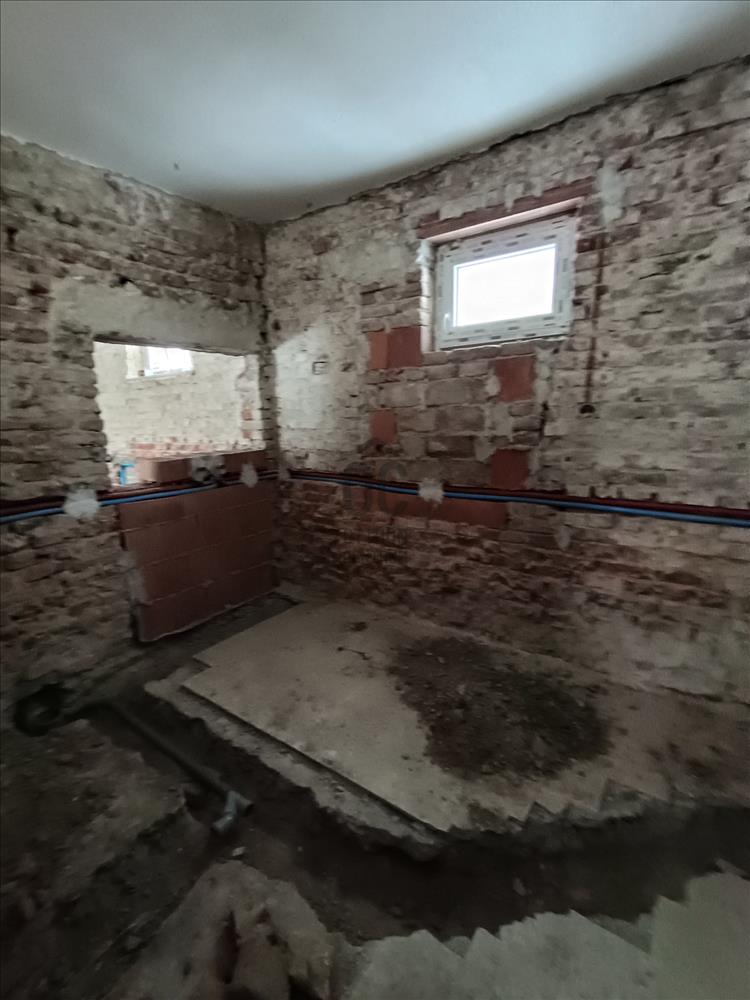 A nyílászárók műanyagra cserélve, belső csövezés, csatornázás válaszfalazás nagyrészt elkészült.