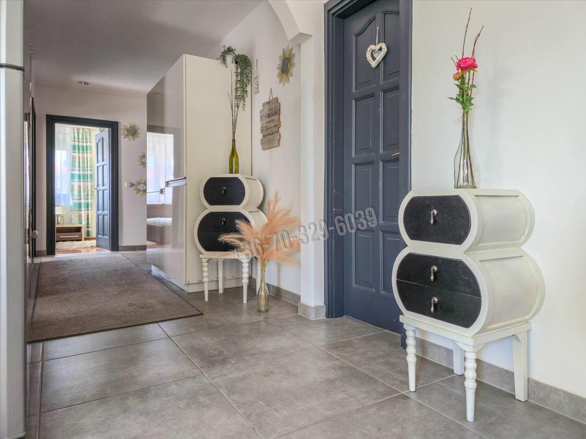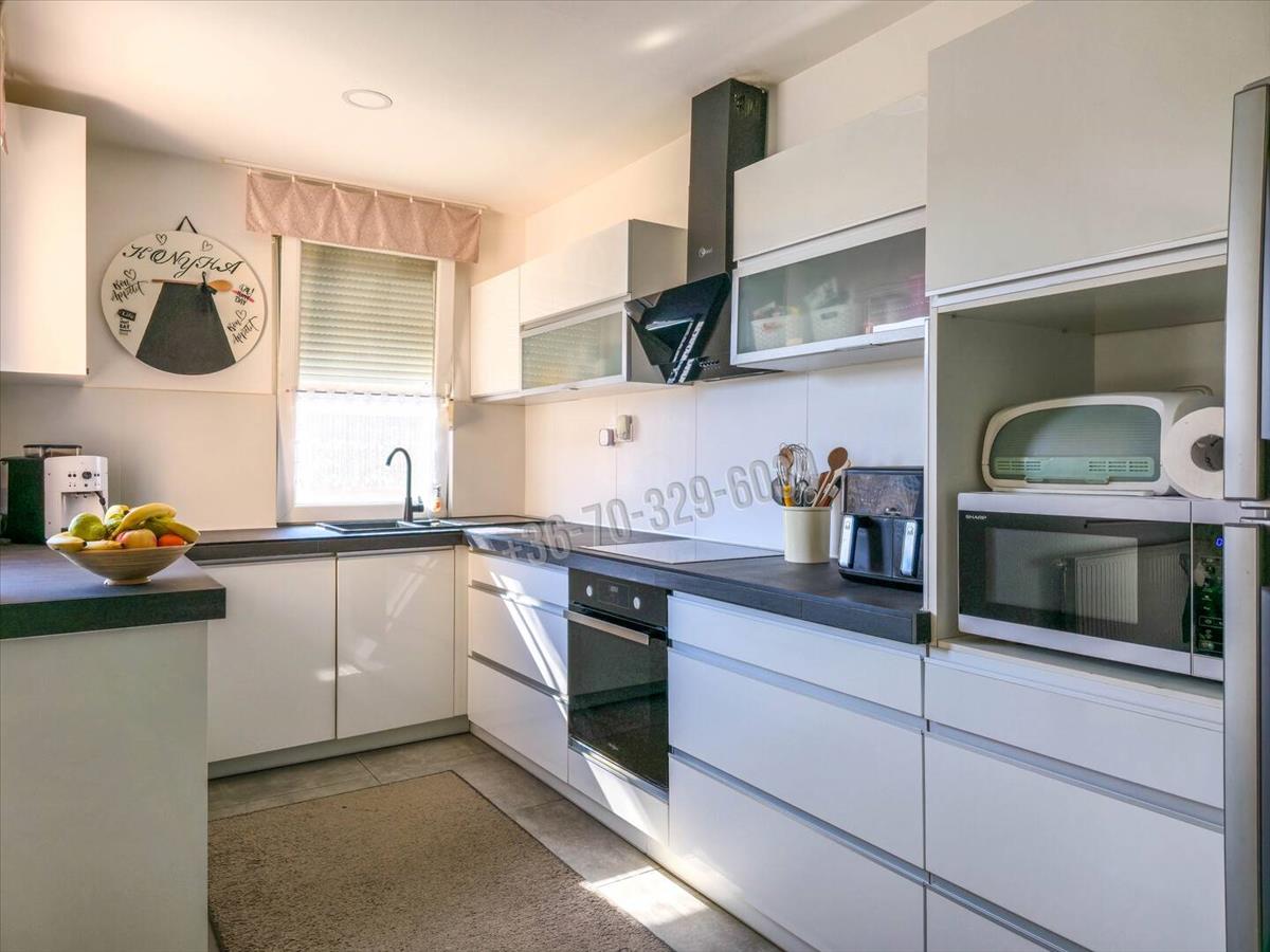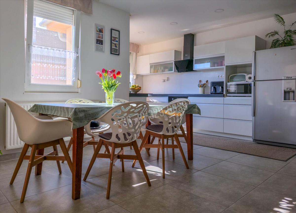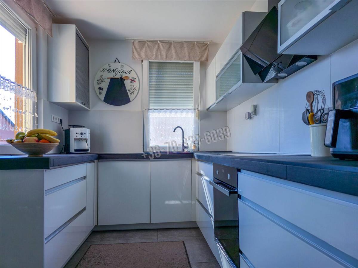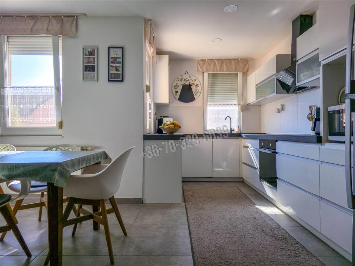 Csendes, kertvárosias környezet, kényelmes, tágas, világos élettér, praktikus elosztás jellemzi ezt az amerikai konyha- nappali, 3 szoba, külön fürdő, külön wc, mosókonyha elosztású otthont, amihez 32 nm -es, jakuzzival felszerelt beépített terasz/télikert tartozik.