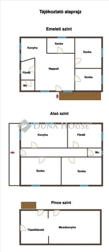 Felső szint (71 nm ): nappali, 3 szoba, konyha, fürdőszoba + külön WC