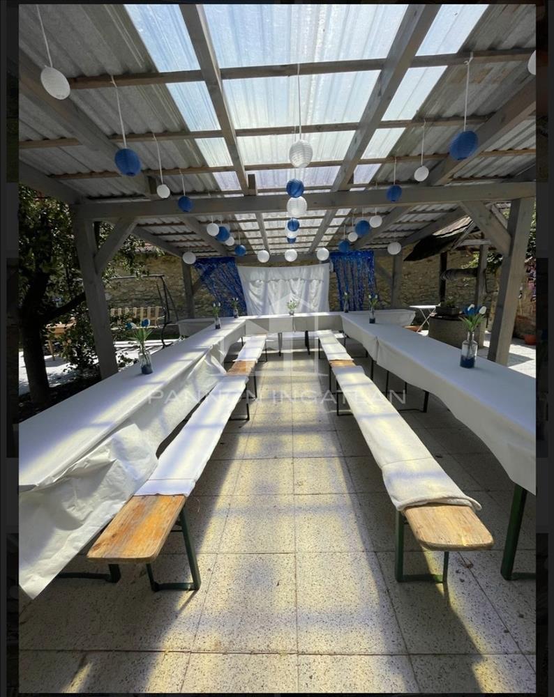 – hatalmas, 100 m²-es épített terasz, melyből 40 m² fedett – tökéletes családi vagy baráti rendezvényekhez,