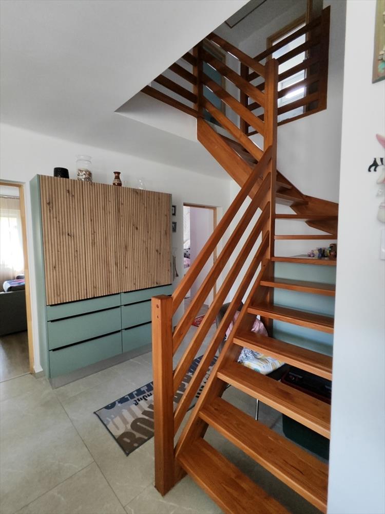 A földszinten világos, klímás nappali, hangulatos konyha étkező, hálószoba és fürdőszoba kapott helyet. Az emeleten három további szoba, egy modern zuhanyzós fürdő és egy erkély várja az új lakókat. a beépített bútorok nemcsak elegánsak, hanem bőséges tárolóhelyet is biztosítanak, így minden a helyére kerülhet.