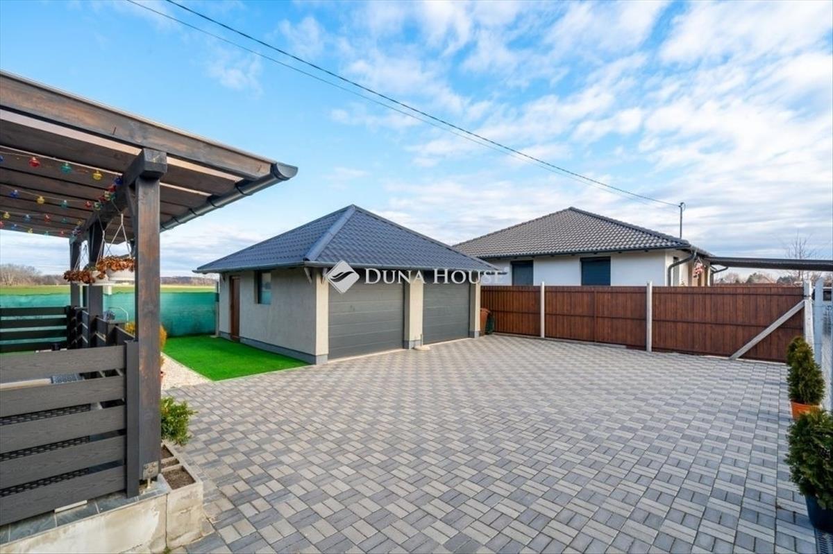 Majosházán eladó egy 440 nm -es körbekerített telken lévő 2019-ben épült 91 nm -es duplagarázsos családiház.