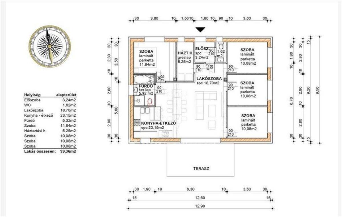 Átgondolt elrendezés, 99, 36 m2 nettó alapterület