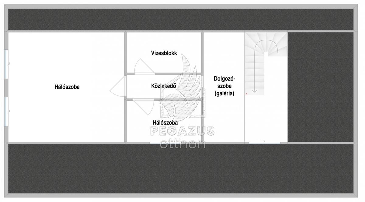 Az emeleti galéria jelenleg dolgozószobaként funkcionál, de tökéletes olvasósarok, vagy játszószoba lehet. Ezen kívül egy kisebb hálószoba, egy vizesblokk, és egy rendkívül tágas hálószoba található itt (nagyrészt meleg padlószőnyeggel).