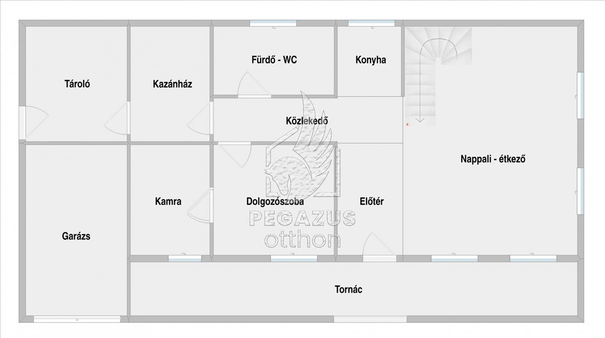 Belépve egy galériával egybeépített amerikai konyha-nappaliba érkezünk, mely a közösségi élet szíve. Itt található még egy dolgozószoba (mindkét helyiség laminált padlóval), egy modern fürdőszoba-WC és egy praktikus kamra. a ház hátsó része ad helyet a kívülről is megközelíthető kazánháznak, tárolónak és garázsnak.