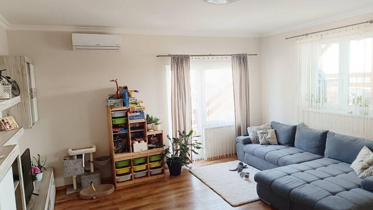 -A nyári hűtésről a nappaliban, egy Samsung (hűtő-fűtő) inverteres klímaberendezés gondoskodik.