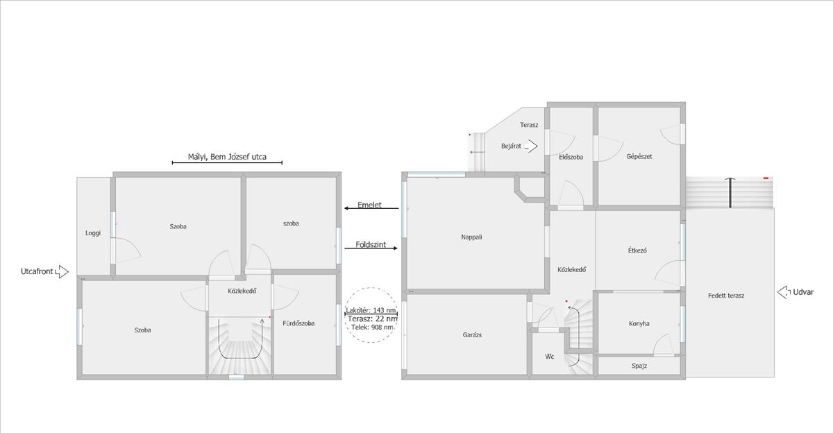 Emelet: 3xHálószoba; Fürdőszoba;