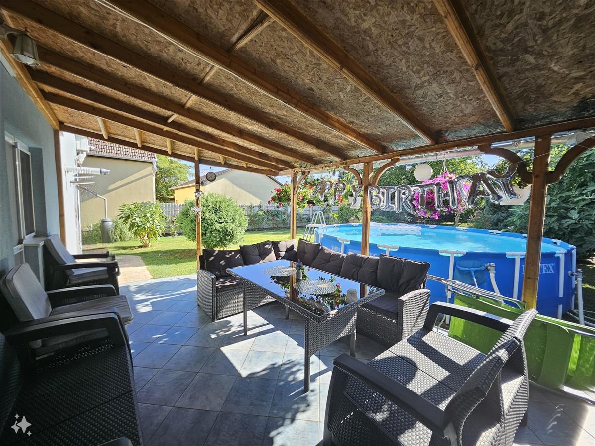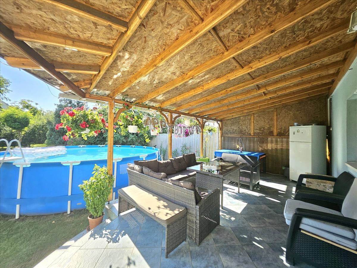 Az otthon minden szempontból jól felszerelt, hogy kielégítse a modern élet igényeit. a padlás 15 cm-es üveggyapot szigetelést kapott, biztosítva a ház energiahatékonyságát és kellemes hőérzetet télen-nyáron. a fedett terasz a szabadidő kellemes eltöltésére ad lehetőséget, míg a szépen térkövezett kocsibeálló két autó számára nyújt kényelmes parkolást.