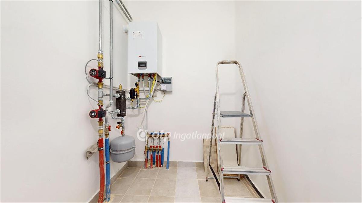 Az épület fűtéséről egy kondenz kombi gázkazán gondoskodik, minden szobában radiátor hőleadóval, valamint a meleg víz előállításáról is ezen egység felel.