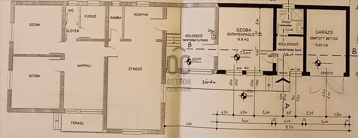 Lakószint (100nm ): előtér/lépcsőház, konyha, spájz, teraszkapcsolatos nappali, fürdőszoba, külön wc, 3 külön nyíló hálószoba