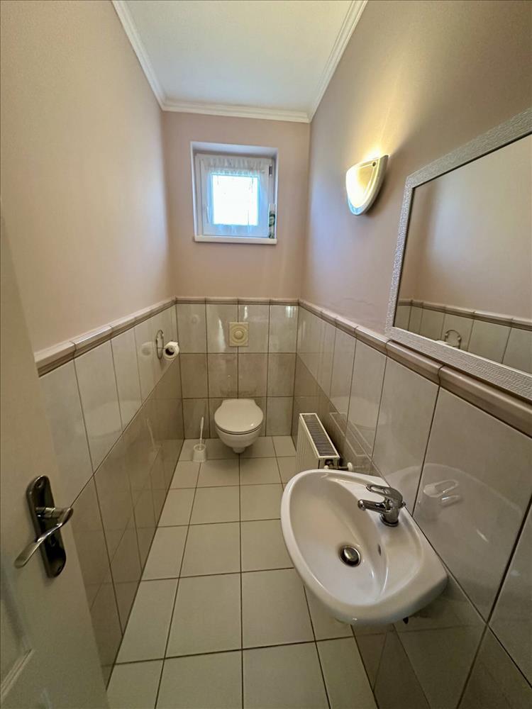 In Marcali, in a quiet, suburban residential area, surrounded by newly built properties, we are offering for sale this modern-style family home in excellent condition, which offers a real sense of home and long-term security for its future owner. The property was built in 2001 and is located on a corner lot. Its unique feature is that it has two entrances: one leads directly into the living area, while the other, facing the street, leads to the garage and, through it, to the yard. The house has a usable floor space of 135 square meters, with three well-separated rooms, the central element of which is the spacious living room with an American-style kitchen. Thanks to the large glass surfaces, the space is bright and friendly all day long, and its atmosphere is made truly special by a wood-burning fireplace, which not only provides warmth on winter evenings but also creates a truly homely atmosphere. The living room has direct access to the covered terrace, which is an ideal place for morning coffee or quiet evening conversations. The technical condition of the property is excellent, with heat-insulated, double-glazed plastic windows, 6 cm of Dryvit insulation on the facade, and 15 cm of cotton wool insulation above the ceiling, all of which ensure energy-efficient operation. Heating is provided by a gas boiler with radiator heat transfer, hot water is also provided by the gas boiler with a heat storage tank, while air conditioning and a fireplace are available in the living room as alternative heating options. Underfloor heating in the bathroom increases the feeling of comfort. The interior layout is well thought out: the rooms open from the hallway, the living room and dining room form a large, livable space, and entering through the main door takes you directly to the heart of the apartment. The spacious bathroom has a corner bathtub, separate shower, double sink, toilet, and bidet, and there is also a separate toilet with its own entrance. The building is in perfect structural condition, with a concrete tile roof. The plot also includes a 55-square-meter, solidly built garage with a deep concrete foundation, dryvit insulation, and concrete tiles, as well as water, sewage, and electricity connections. By converting it, it is possible to create a separate two-story apartment with its own garden, which is an excellent opportunity for hosting guests, multi-generational living, or even investment purposes. a cozy oven in the garden completes the experience, which can be an ideal venue for friends or family gatherings during the summer. The property is connected to all utilities, built with modern technical solutions, currently unoccupied, and therefore available for immediate possession. It is an ideal choice for those who are looking for a spacious, well-designed home in a quiet, sophisticated environment in Marcali, which will not only serve as a place to live but also as a long-term investment. FIX 3% lakáshitelre megvehető