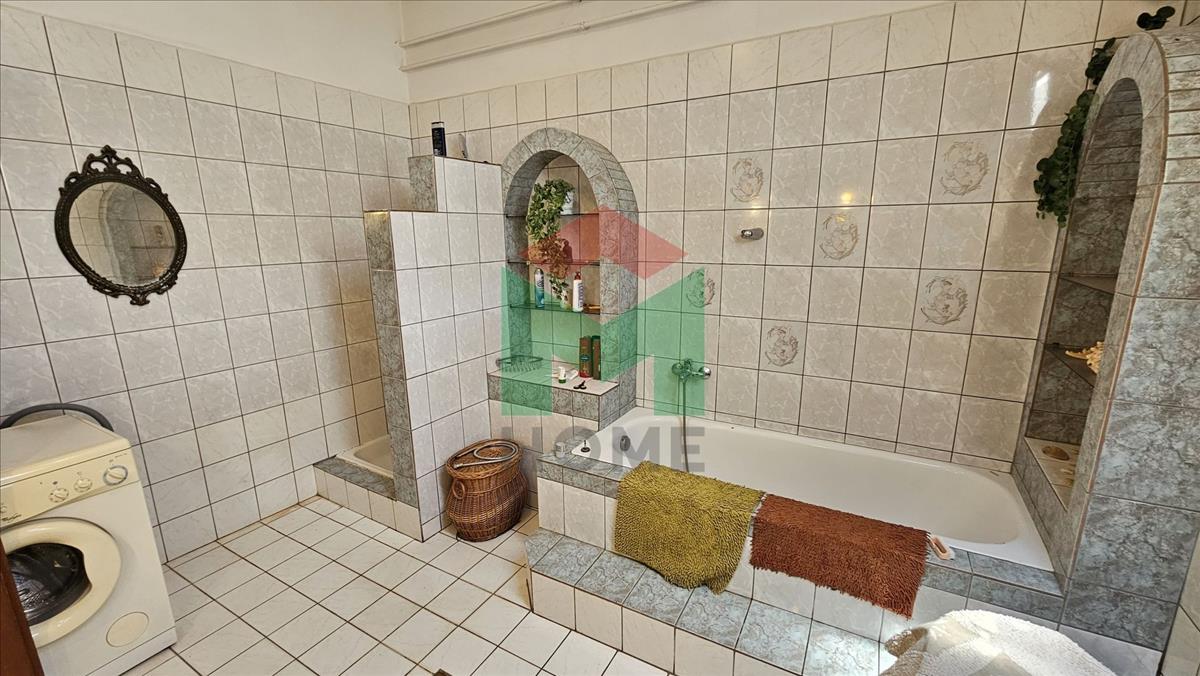 Az emeleti lakrész helységei: 4 szoba, nappali, közlekedő, konyha, étkező, kamra, fürdőszoba, külön mellékhelyiség, valamint két erkély.