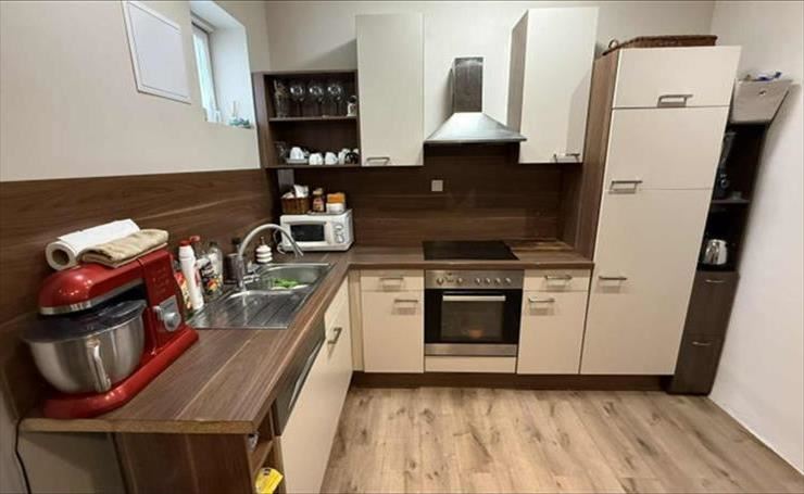 Räumlichkeiten der Immobilie:Geräumiges, helles Schlafzimmer, zwei kleine Schlafzimmer, Badezimmer mit Dusche, Wc, Flur, ausgestattete moderne Küche und Essbereich sowie ein helles Wohnzimmer mit Blick auf den Garten, von dem aus man auf die überdachte, gemütliche Terrasse gelangt.