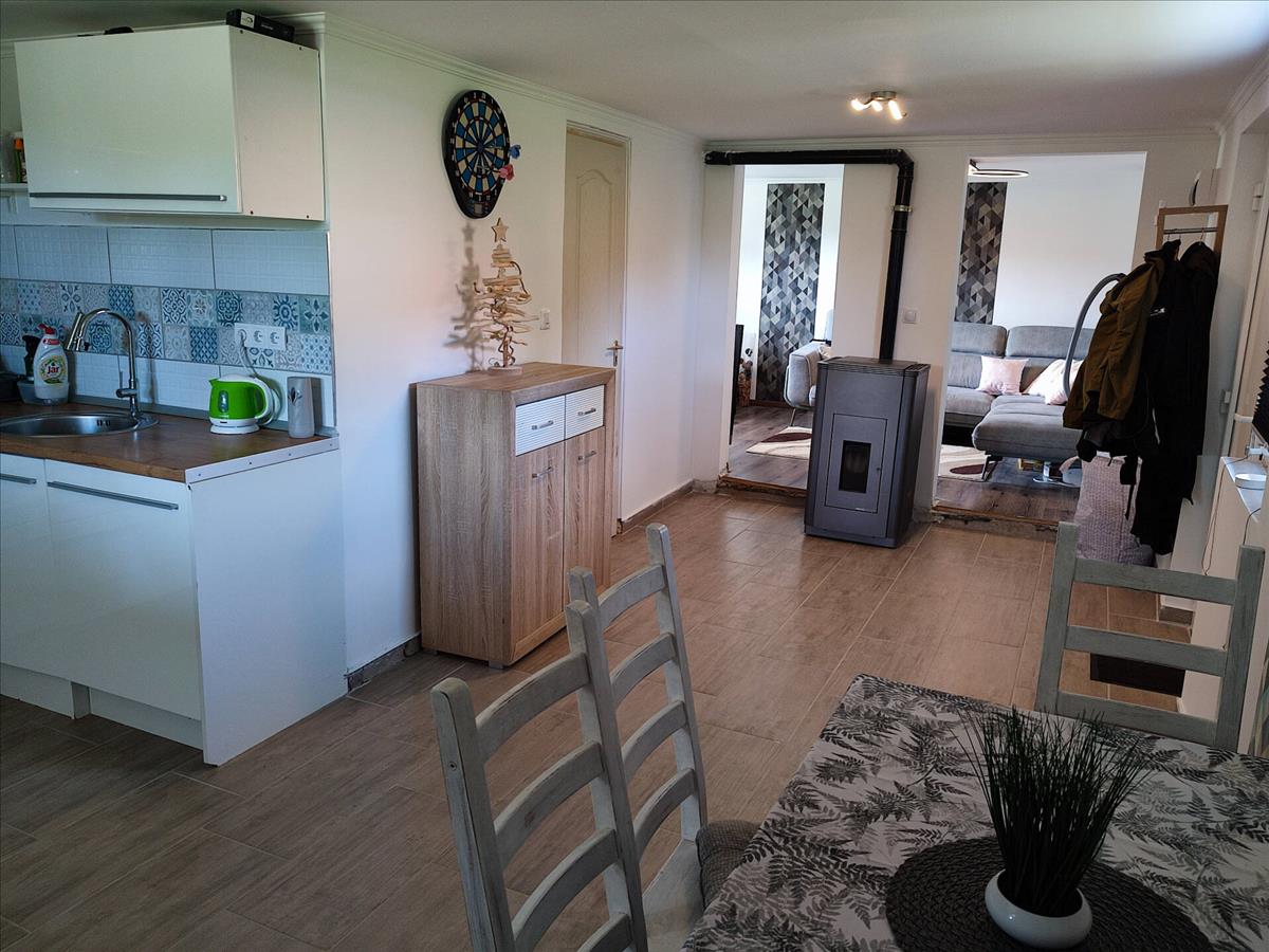 Ha vágyik a nyugalomra és a csendre, ez a kis ház tökéletes választás Önnek! Elhelyezkedése a város zajától távol, a természet ölelésében biztosítja az igazi kikapcsolódást. Az ingatlan a főúttól csupán 30 méterre található! Az erkélyről elénk tárul a gyönyörű zöld övezet, amely minden napot felejthetetlenné tesz. Az ingatlan ideális választás lehet akár hétvégi háznak is, vagy állandó lakhatásra. a tágas nappali és konyha rész kiváló életteret biztosít egy családi vagy baráti összejövetelhez. a hálószobák az emeleten helyezkednek el, így teljes privát szférát biztosítanak a pihenéshez. Az alsó szinten található a modern fürdőszoba, míg az emeleten egy külön mellékhelyiség is rendelkezésre áll.