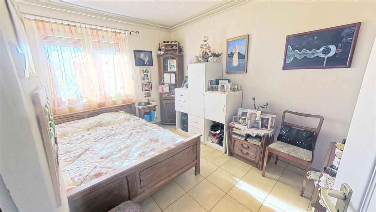 A felső szinten három, tényleg tágas szobát találunk, melyek jól elkülönülnek egymástól. Két szobából az erkélyre van kijárat. Az emeleti felújított, nagy sarokkáddal felszerelt fürdőszoba valóban kényelmesen nagy, világos. Mellette a külön wc és a mosókonyha található. a felső szint mennyezete beton födém, így a tetőtér beépíthető.