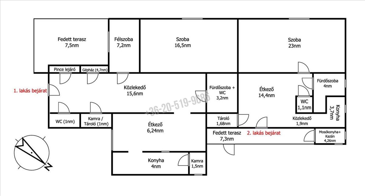 A családi házban két külön bejáratú rész került kialakításra, amelyek külön gáz-, villany-, és vízórával rendelkeznek!