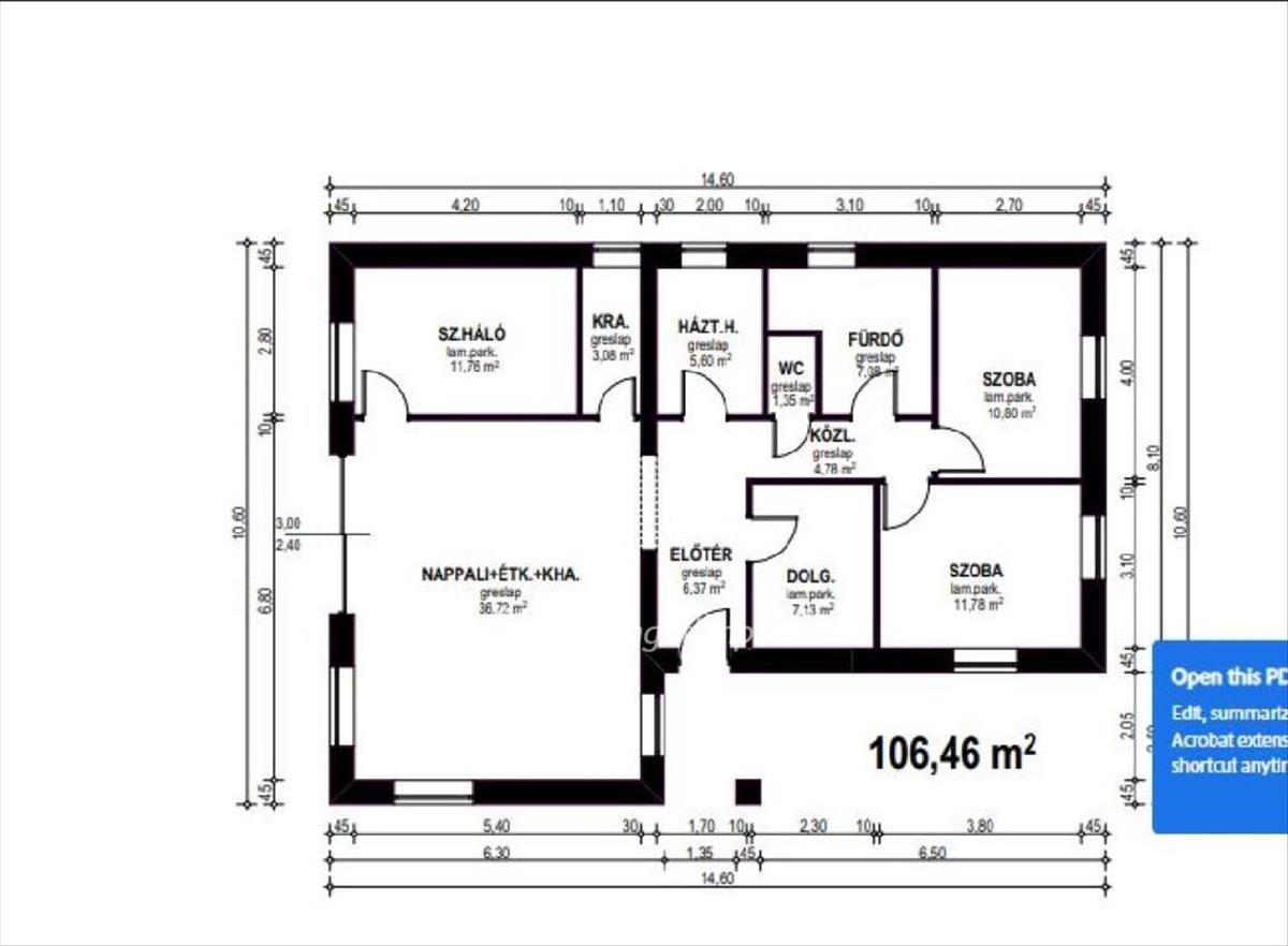 -Összes alapterület: 106, 46 m2