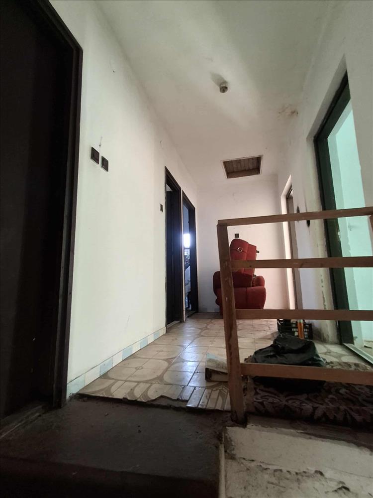 A ház felújításra szorul. Az alsó szinten folyosó, garázs, fürdőszoba, konyha, ebédlő, nappali, pincelejáró, a felső szinten fürdőszoba, 3+fél szoba található, melyhez belső lépcsősoron lehet feljutni.