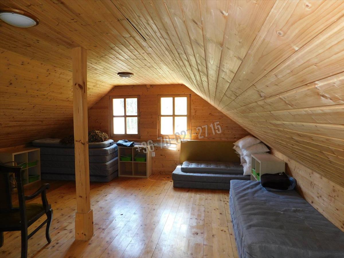 - a 2. Épület könnyűszerkezetes, 2 szinten 70 nm-es lakótérrel, melyben 2 szoba illetve a wellness áll rendelkezésre