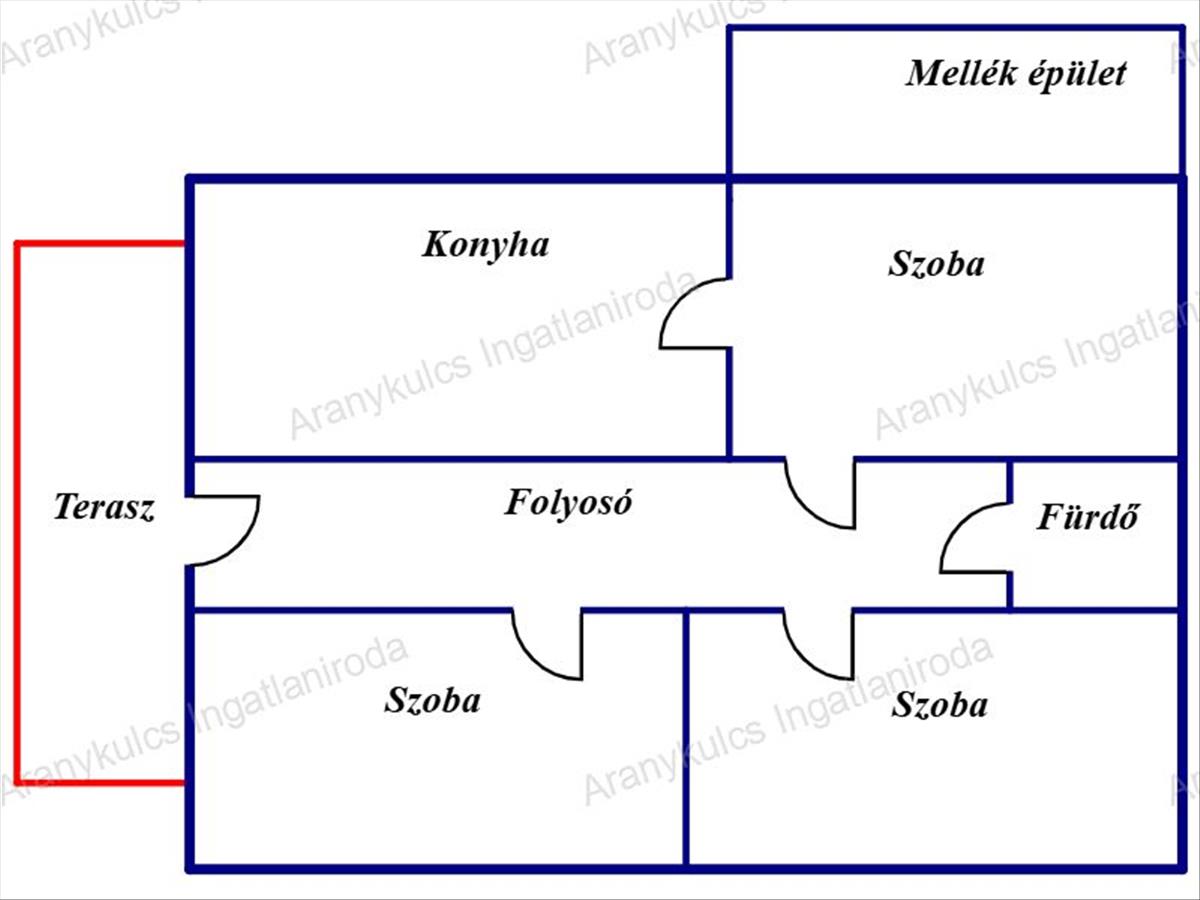 Helyiségek: 3 tágas szoba, konyha, fürdőszoba, közlekedő és külön kazánház.