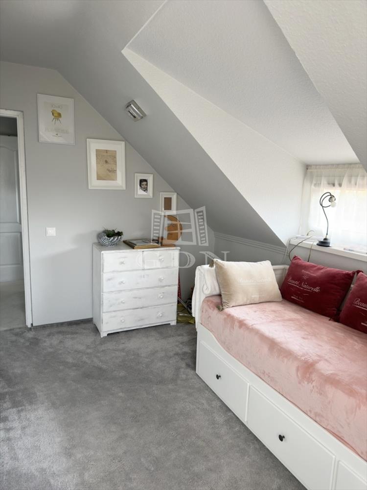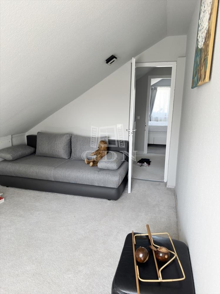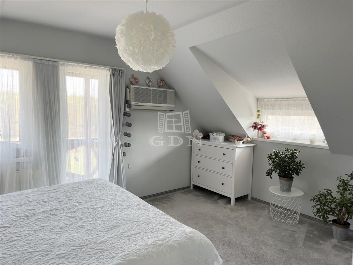 Az emeleti szinten két félszoba, egy fürdő w. C. -Vel, valamint egy erkélyes hálószoba kapott helyet, kilátással a Gödöllői dombságra.