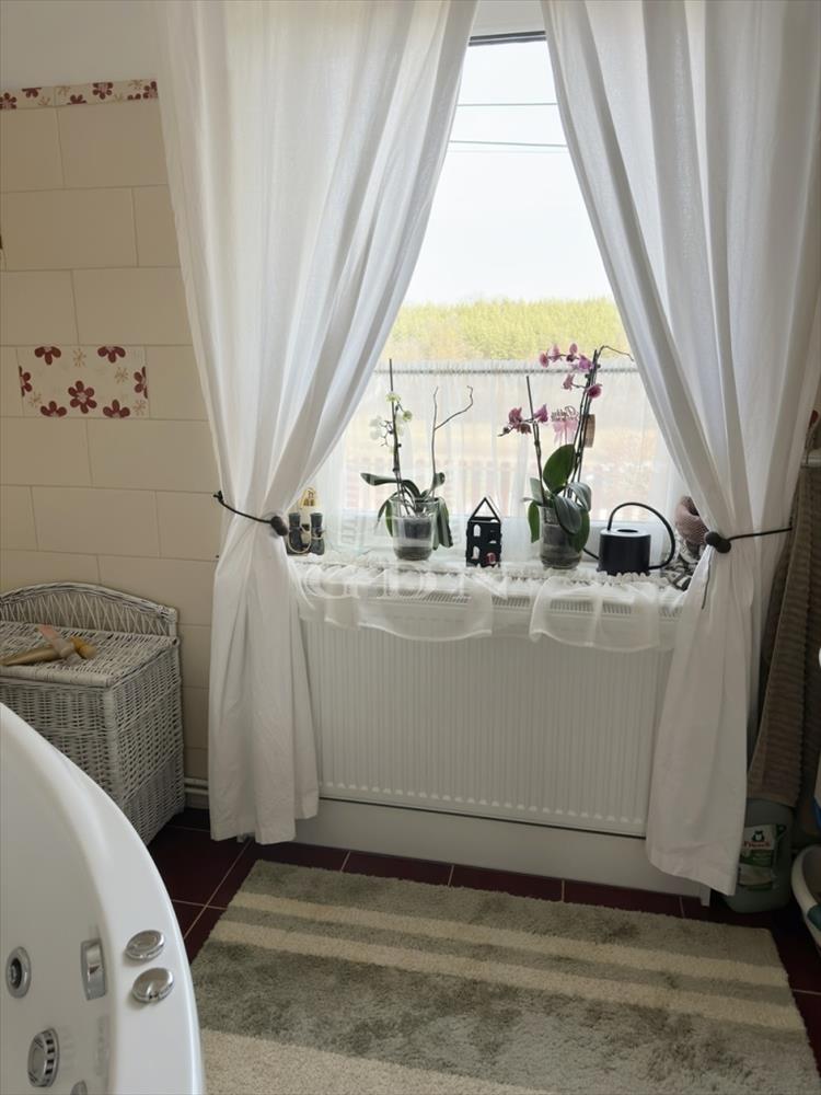 A nagyméretű műanyag ablakoknak köszönhetően az egész élettér világos és barátságos. a nappaliból egy fedett terasz biztosítja a kertkapcsolatot.
