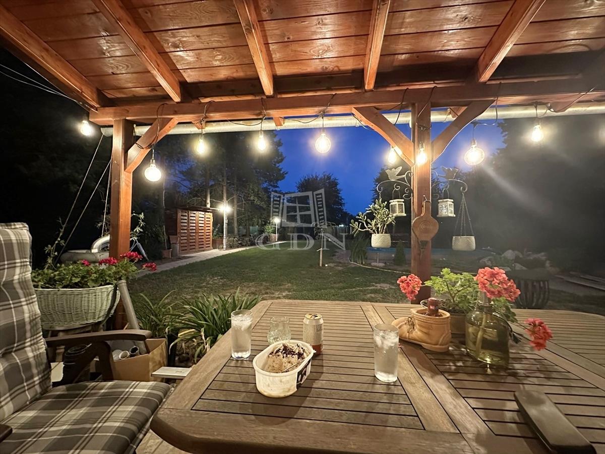 Az épület a 90-es években beton alapra, tégla falazattal épült, külső szigeteléssel ellátott, betoncserép tetőzettel rendelkezik (139 nm ) + 22 terasz. a parkosított kertben (885 nm ) medence, a kert végében kutya kennel, tárolók és baromfi tartásra kialakított alkalmas udvarrész is található a málna, eper és veteményes kert mellett.