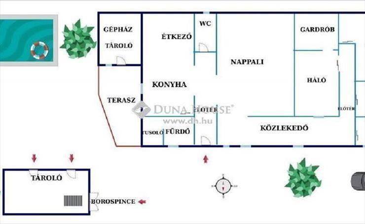 - 40 m2-es téglaépítésű külső építmény, melyben 3 helyiség található, alatta pedig egy kb. 25 m2-es boros pince került kialakításra ( villannyal, szellőztetővel ellátott)