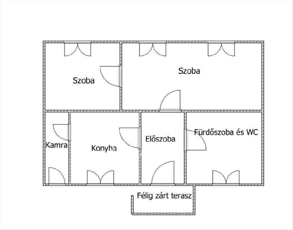 A ház 2 szoba, előszoba, kamra, konyha, fürdőszoba és wc (egyben) valamint félig zárt terasz helyiségekből áll.