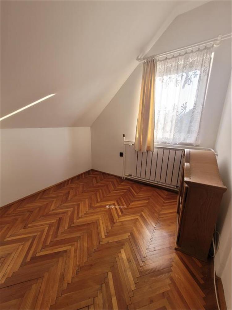A felső szinten 3 szoba (2 nagyobb, 1 kisebb), előszoba, előtér, wc, különálló fürdőszoba (káddal) és erkély található.